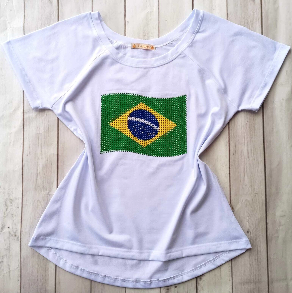 Tshirt branca, com estampa digital de ótima qualidade, mais aplicação em pedras de metal sextavado, para quem ama moda e luxo!