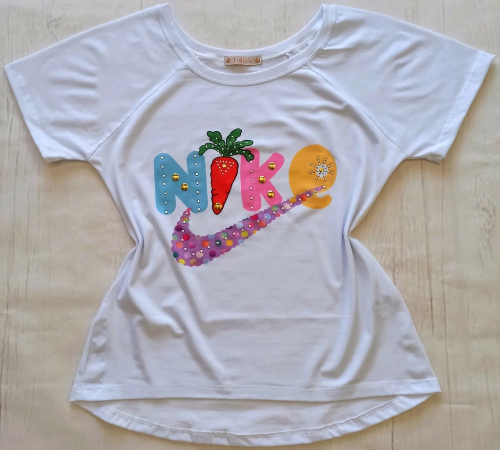 Tshirt branca, com estampa digital de ótima qualidade, mais aplicação em pedras de metal sextavado, para quem ama moda e luxo!